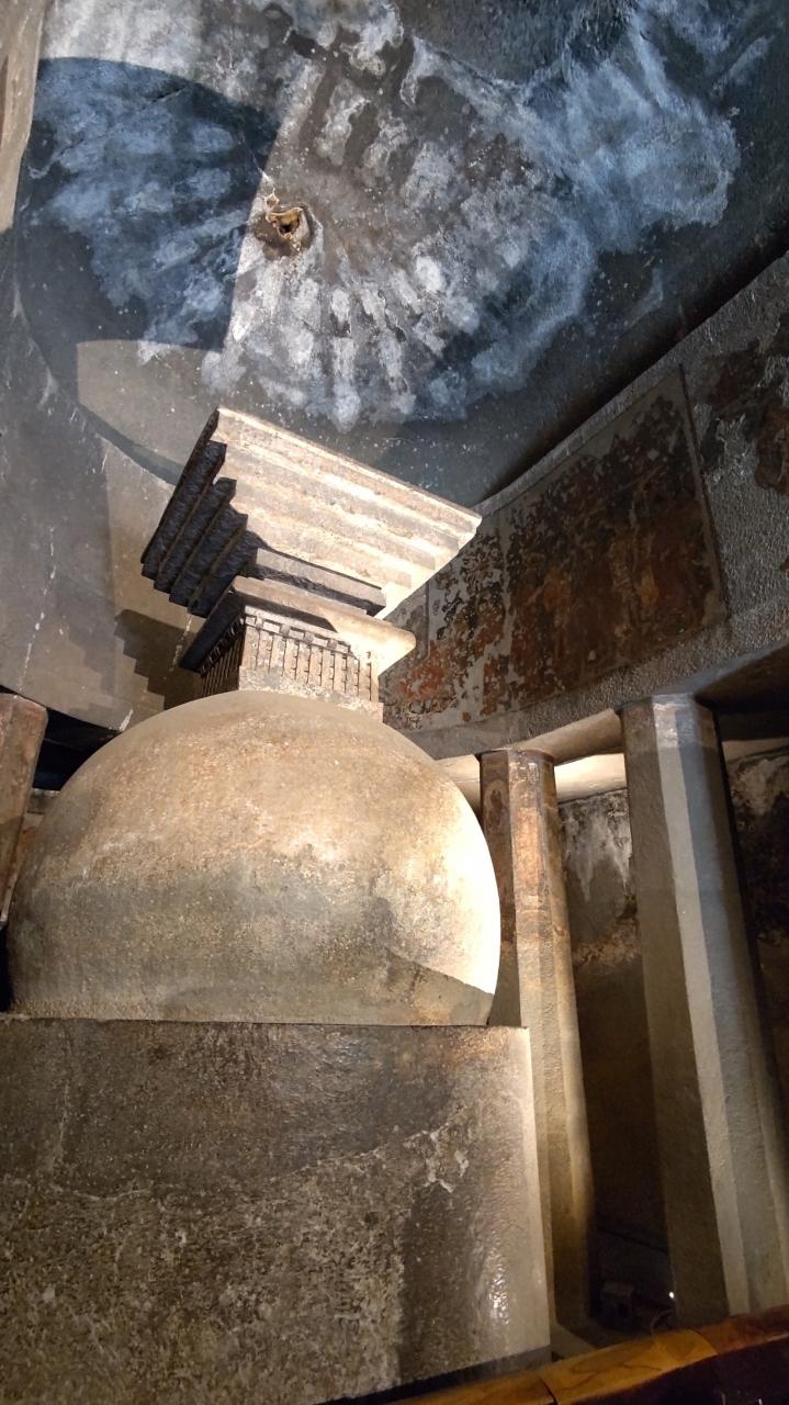 前期のチャイティヤ。壁画は剥落が多いのでしょうか。