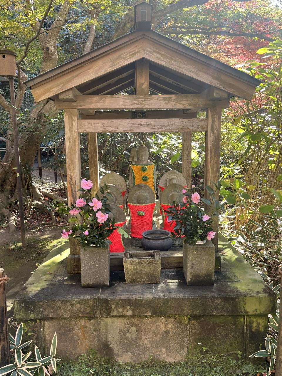 明月院 本堂後庭園の2羽のうさぎとお地蔵さん。