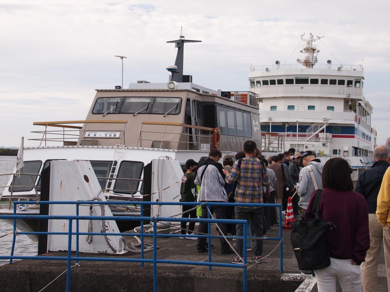 竹生島に渡るには、長浜港ー竹生島ー今津港を結ぶ航路と、彦根港からの2社が運航。本日は琵琶湖の北東、長浜港から船で。
