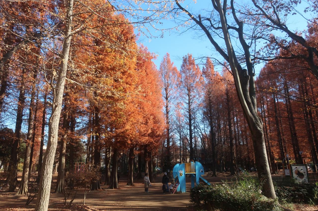 沼の脇にあるメタセコイヤの並木をお散歩して