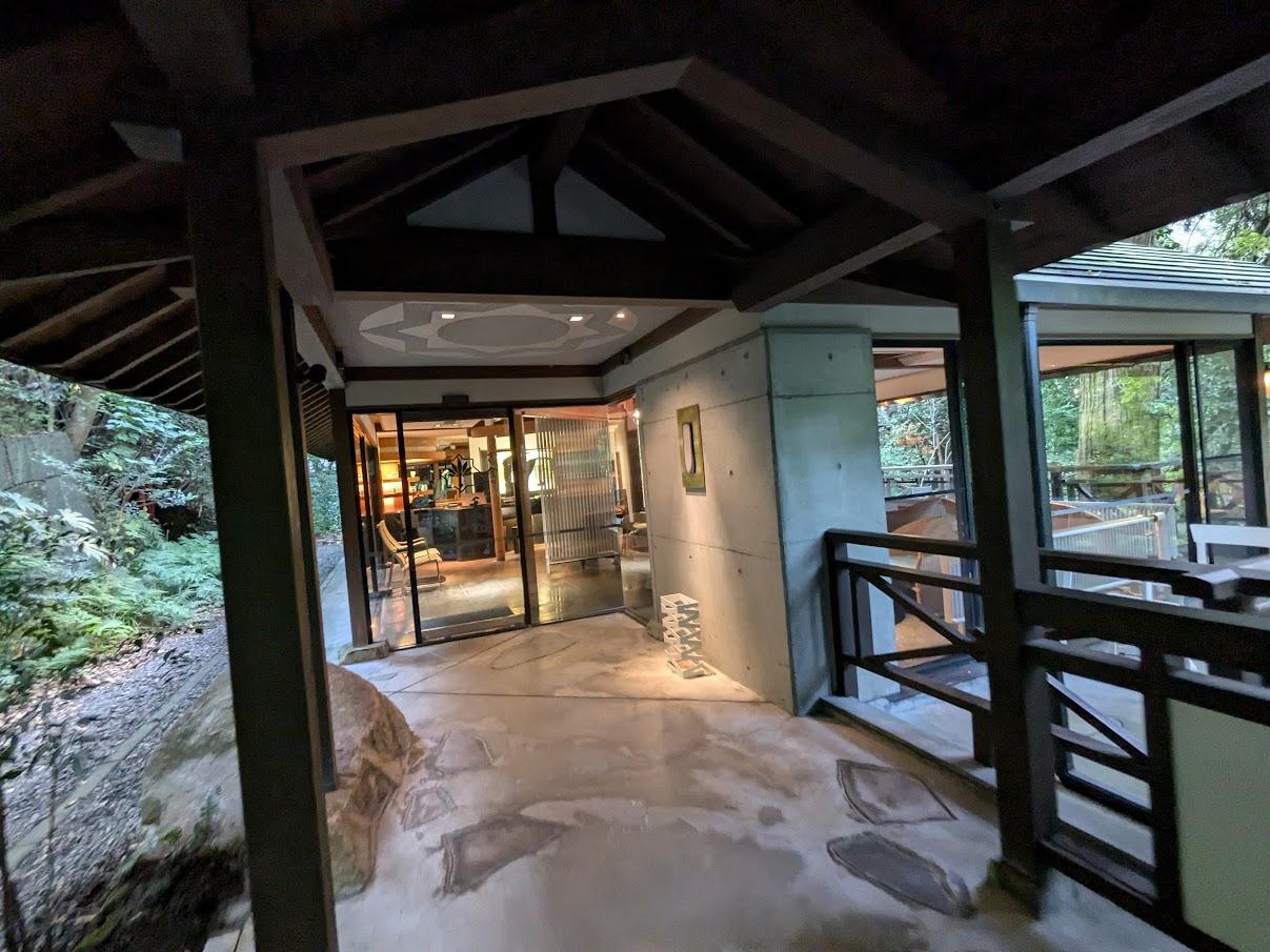ロビーのある建物にも客室があるが和室だったのでベッドのある石蔵を選択