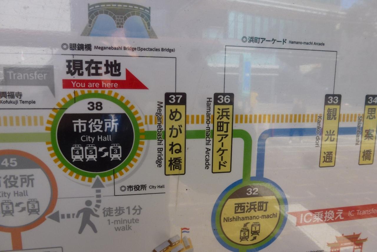 眼鏡橋、浜町アーケード、新地中華街、石橋方面行の電停は直ぐ近くにあります。