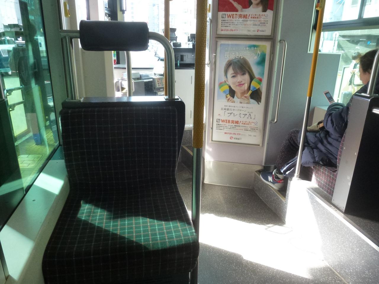 このベンチに座って、長崎路面電車のフリー乗車券(モバイル乗車券)の購入をしました。