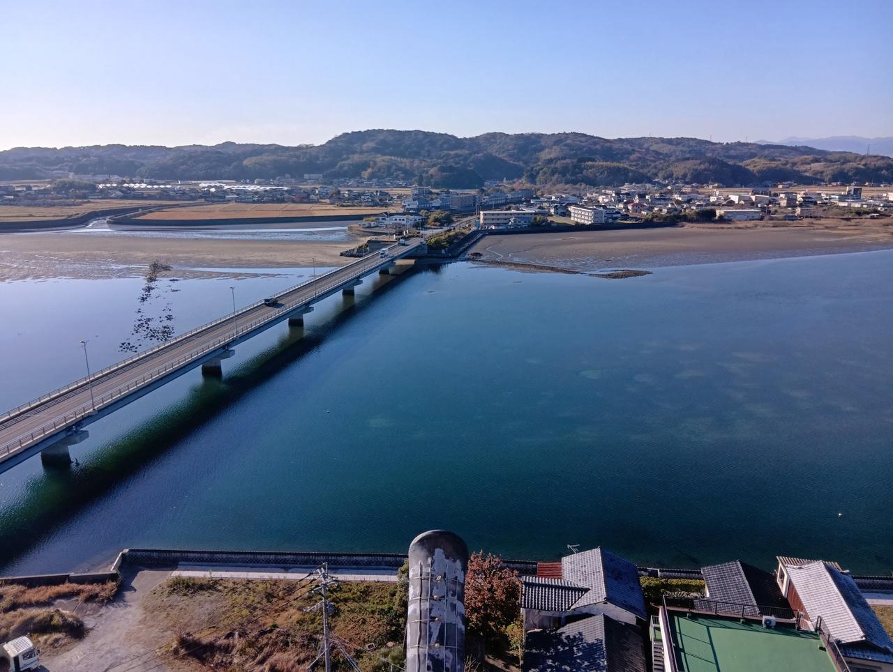 杵築城模擬天守からの眺望です。八坂川と商人の町が見えます。ぐるっと回ってみます。