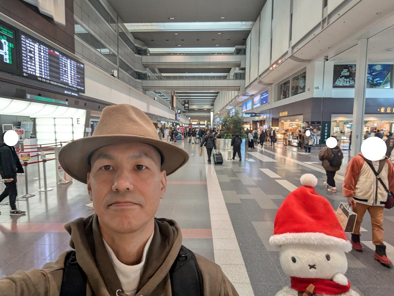 相方もクリスマススタイルで旅します(笑)。羽田空港 第1旅客ターミナル 空港