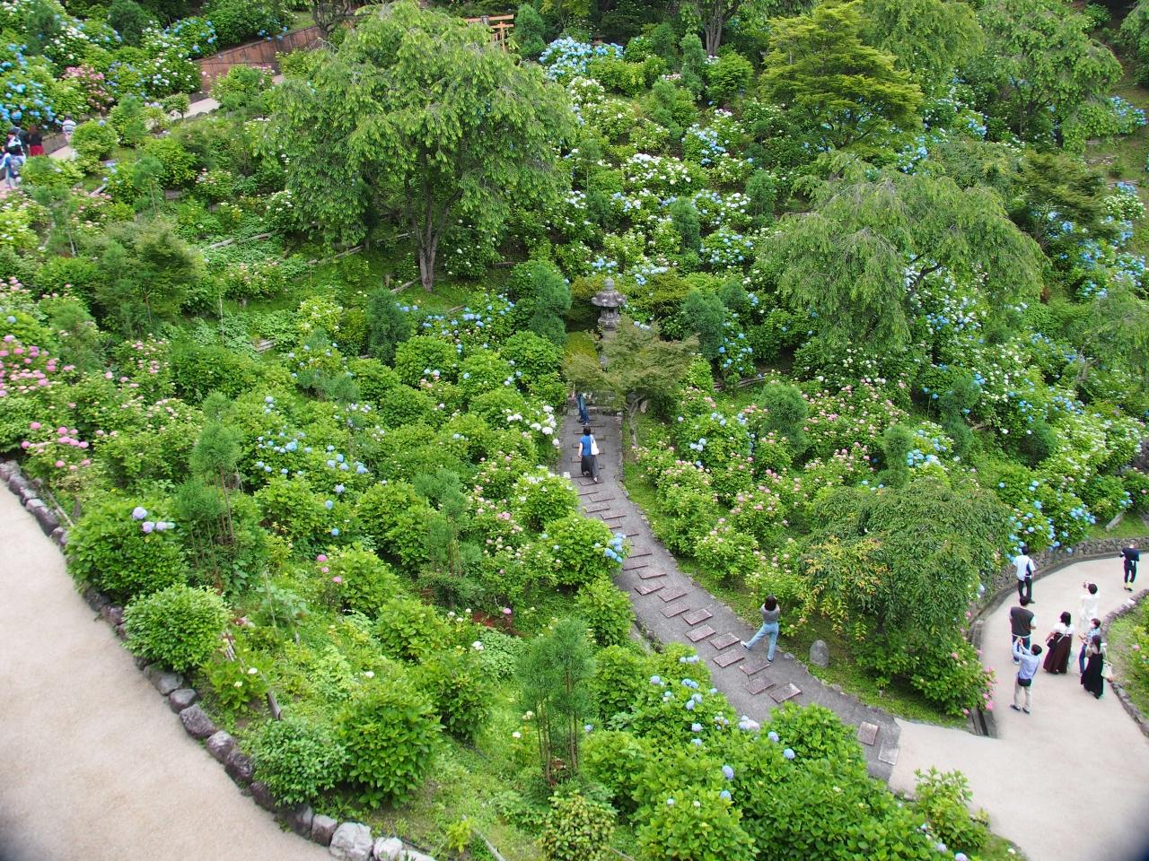 五千坪の大庭園に季節の花が、この日はアジサイのピークで大混雑。駐車場に入るのにだいぶかかりました。