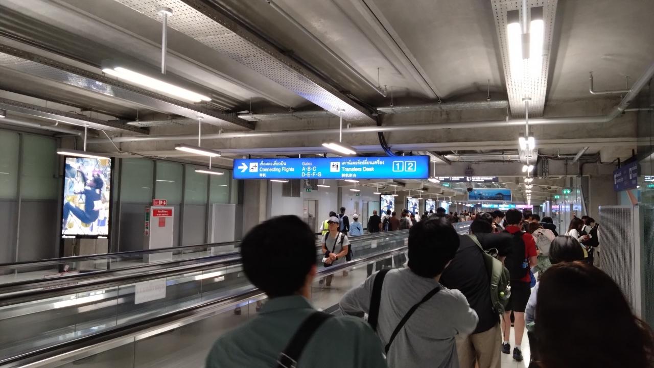 21時55分(時差-2時間)、タイ国際航空TG677便は成田からの6時間半のフライトを終え、バンコクのスワンナプーム国際空港に到着。