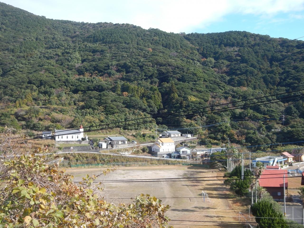 昨夜大曾教会まで歩いた海岸線を眺める。白い建物が見える湾の向こうが教会のある集落。