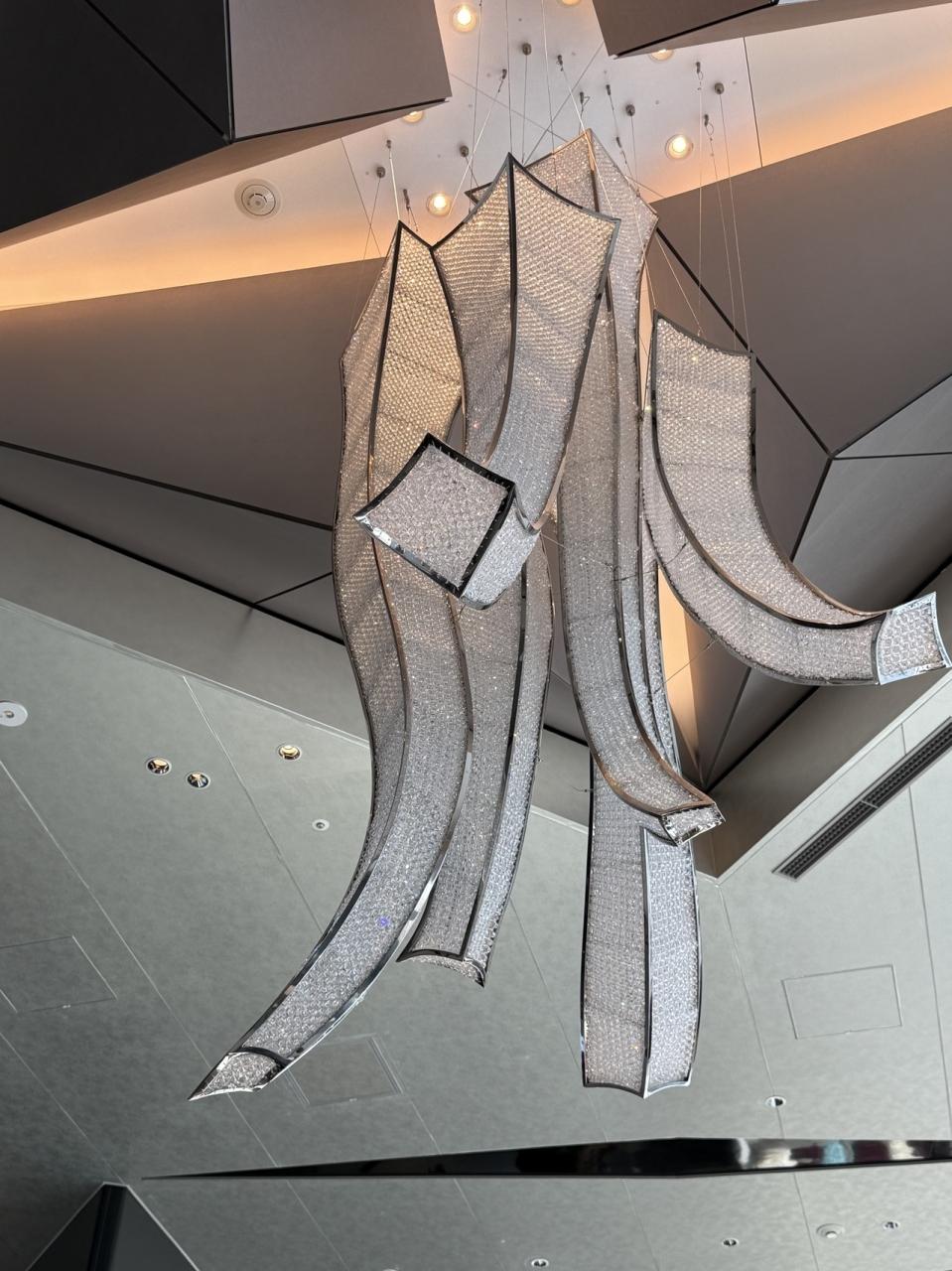 スカイロビーのカメハメハ大王の王冠の羽根をイメージしたというシャンデリアがきらきらと輝いていました。