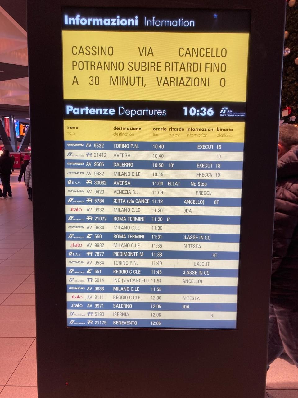 イタロを予約してしいましたが、発車の20分前ぐらいまで出発ホームの表示がなく焦りました。