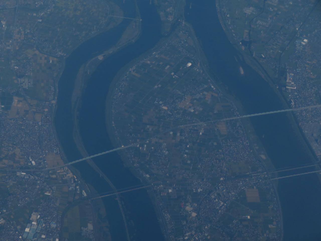 大きな3本の川が見えた。揖斐川長良川木曽川かな? -