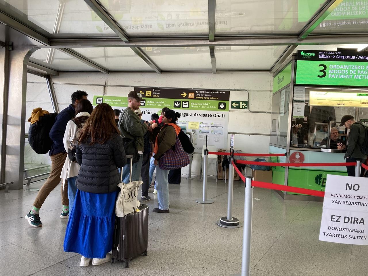 ビルバオ空港からサンセバスチャン行きのバスのチケットを買います。販売機はちょっと難しかったです。何度かトライしてようやくゲットできました。