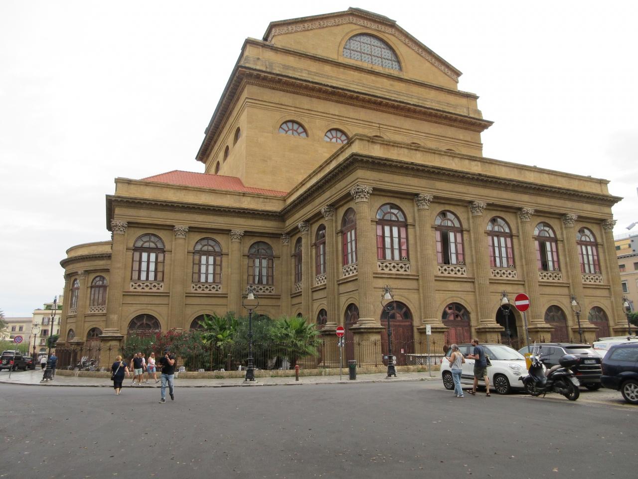 市場を出てそのままポリテアマ劇場まで歩く途中、マッシモ劇場の裏手に出ました。華やかな正面と違い落ち着いた造りです。