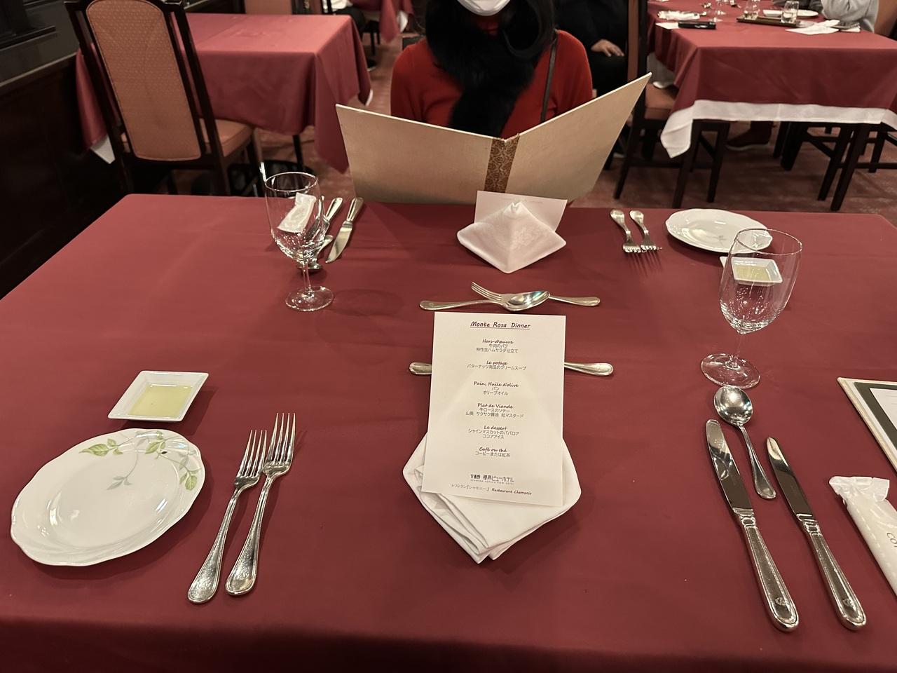 夕食は洋食のコース。