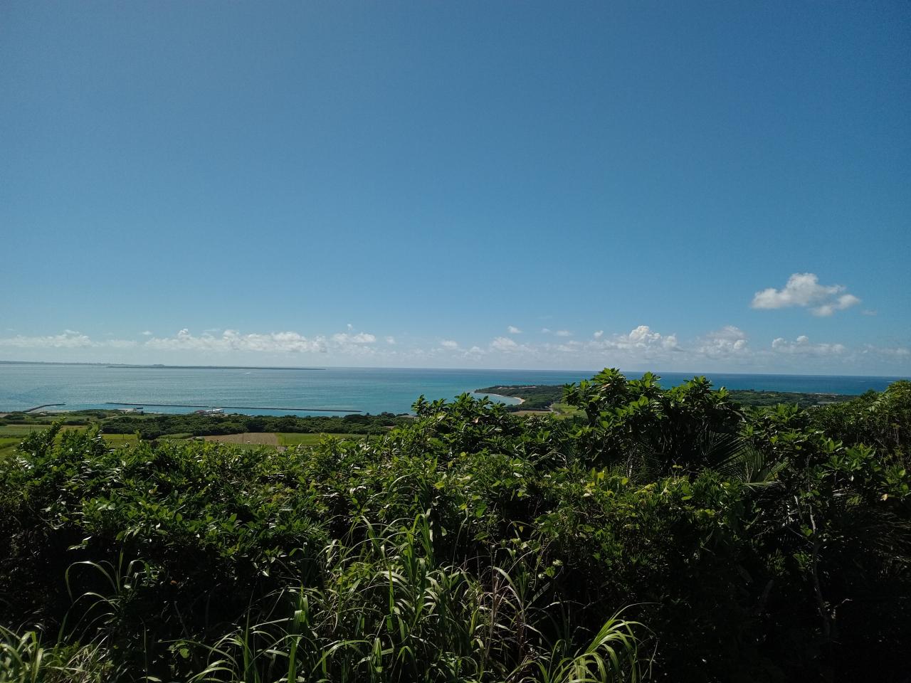 事前に予約していたレンタカーで島内観光開始です。それにしても艶やかな青空の下、さとうきび畑?の風景も最高です!