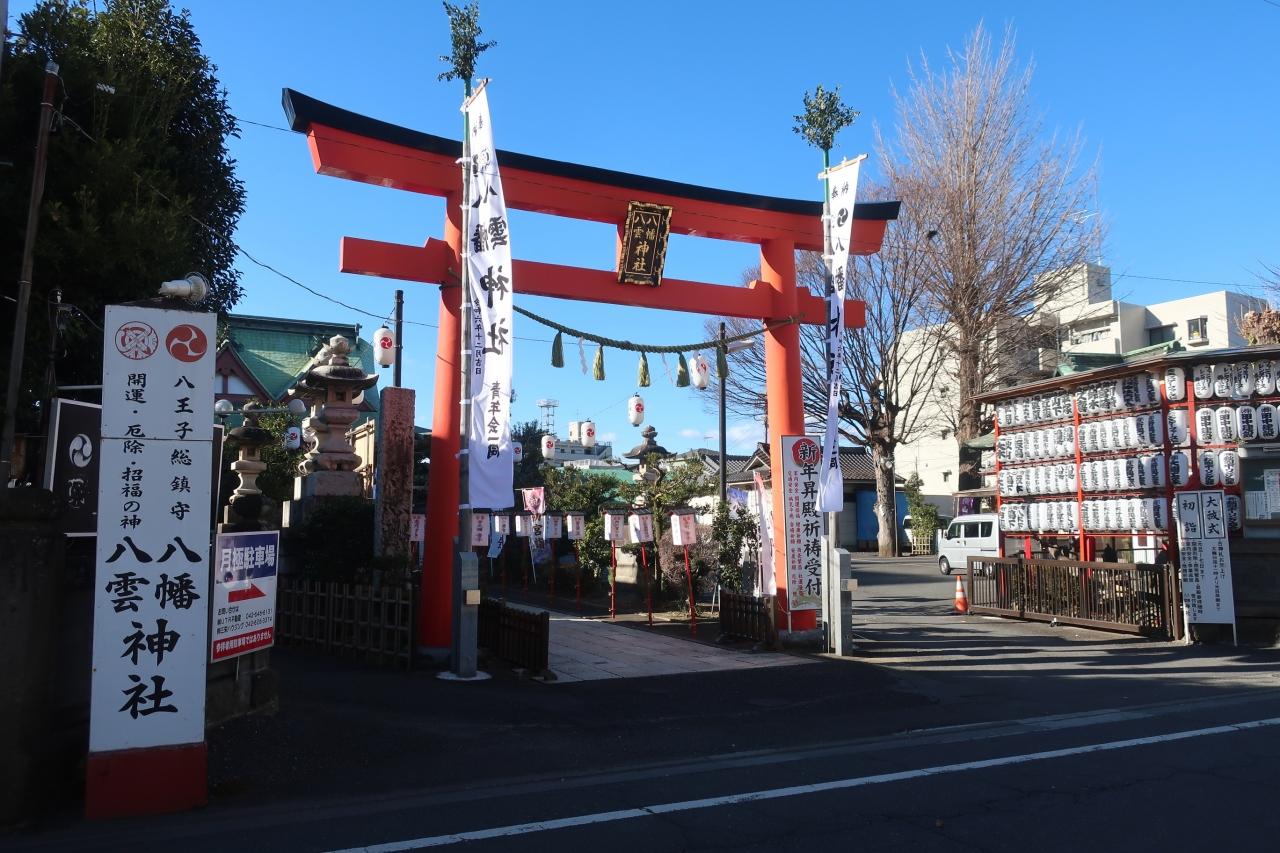 現在では、八王子の地名発生の神と言われる八雲神社とともに、八幡八雲の両社をお守りする神社として境内にお祀りされ、東京都の旧跡に指定されております。御神徳といたしましては、家内安全・無病息災・学びの成就・商売繁盛などがあるといわれております。八幡八雲 神社奉賛会 第五回全国をぐりサミット実行委員会』とのことでした。 -