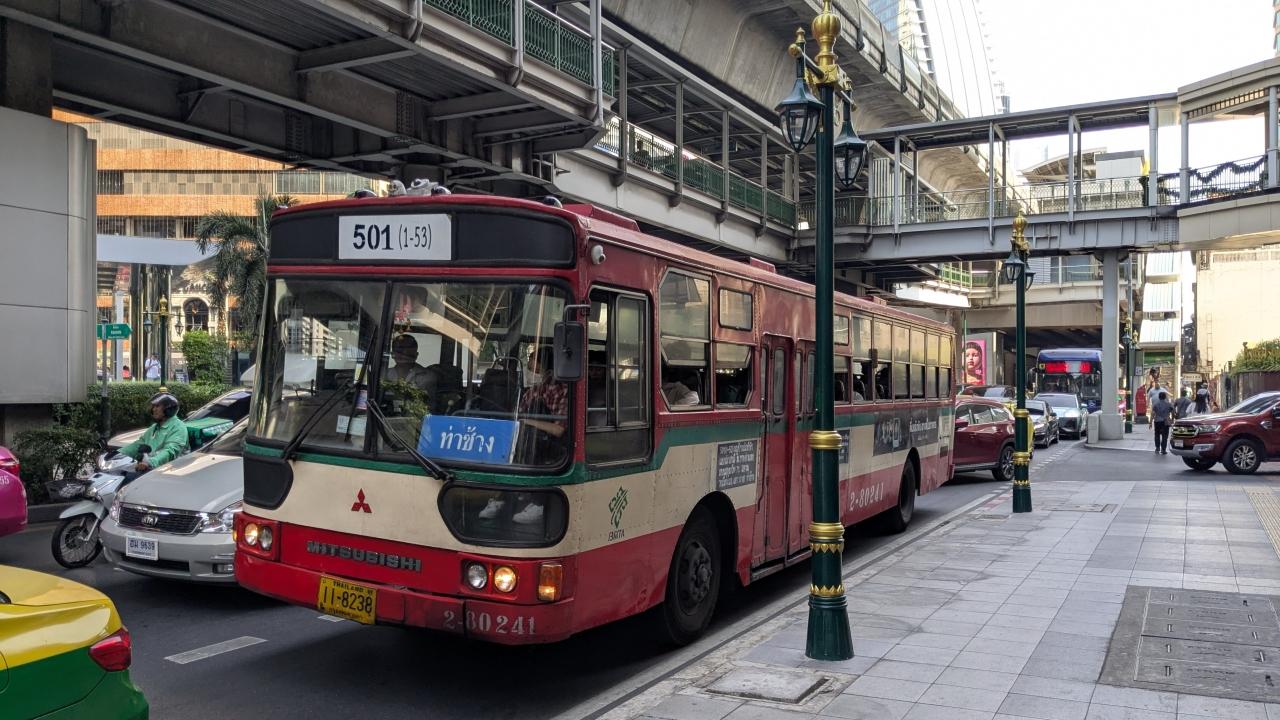 このバスターミナルからホテルにはBTSで戻れるのですが、路線バスに乗ってみました。事前にViaBusというアプリを入れていたので試したかったのです。使い方はよくわからなかったのですが、目的地を入力すると複数の路線が表示され、その番号のバスに乗車しました。車掌のお姉さんに多めに運賃を渡し、そのおつりから計算すると運賃は9バーツのようでした。東バスターミナル (エカマイ) バス系