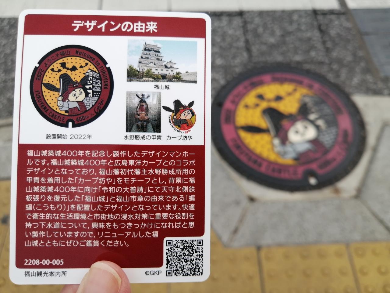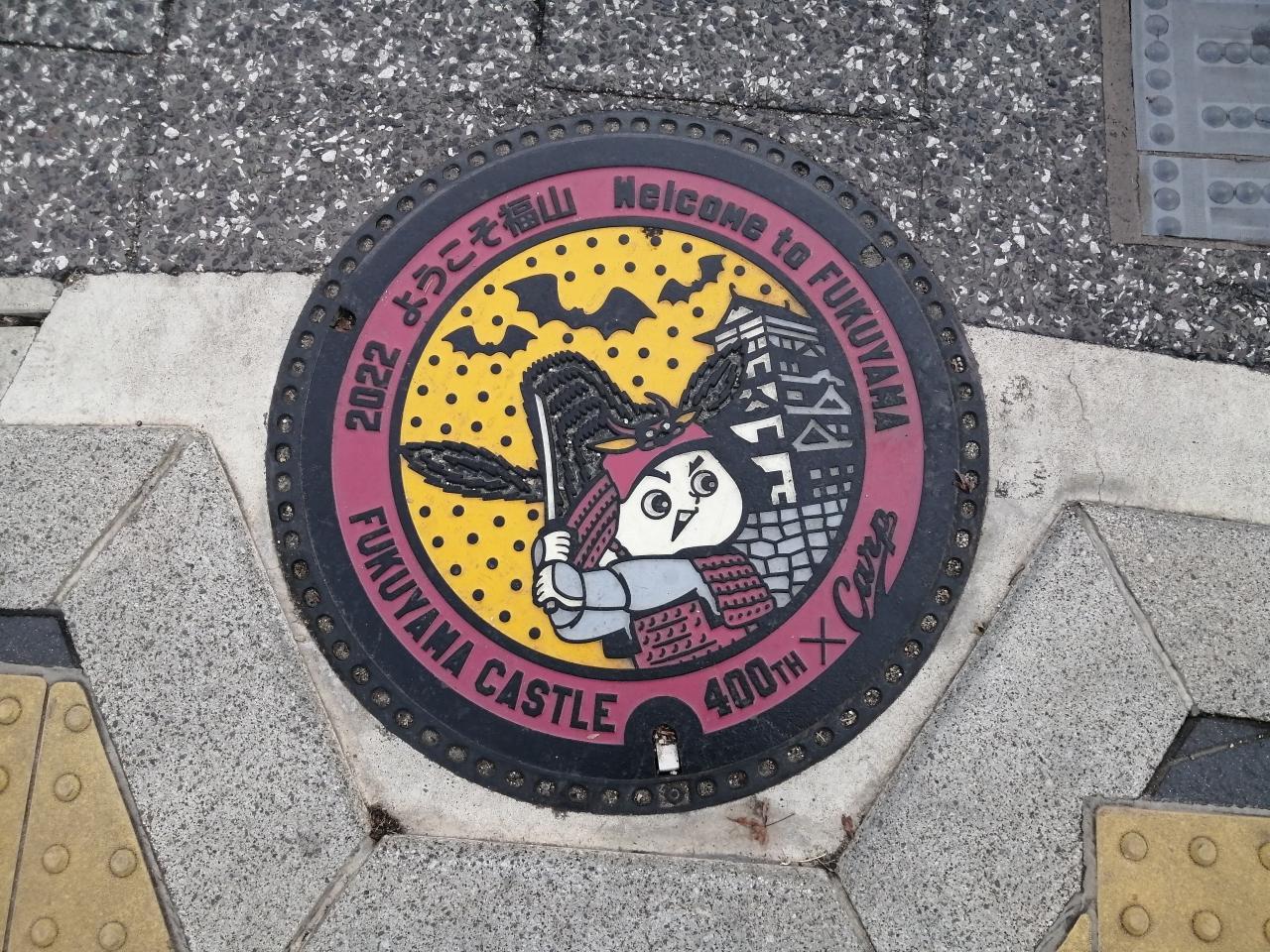福山駅をでて道路を渡った場所にデザインマンホールがありました -