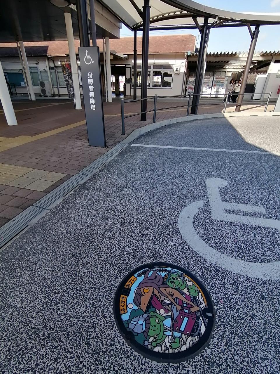 駅前にデザインマンホールがあります -