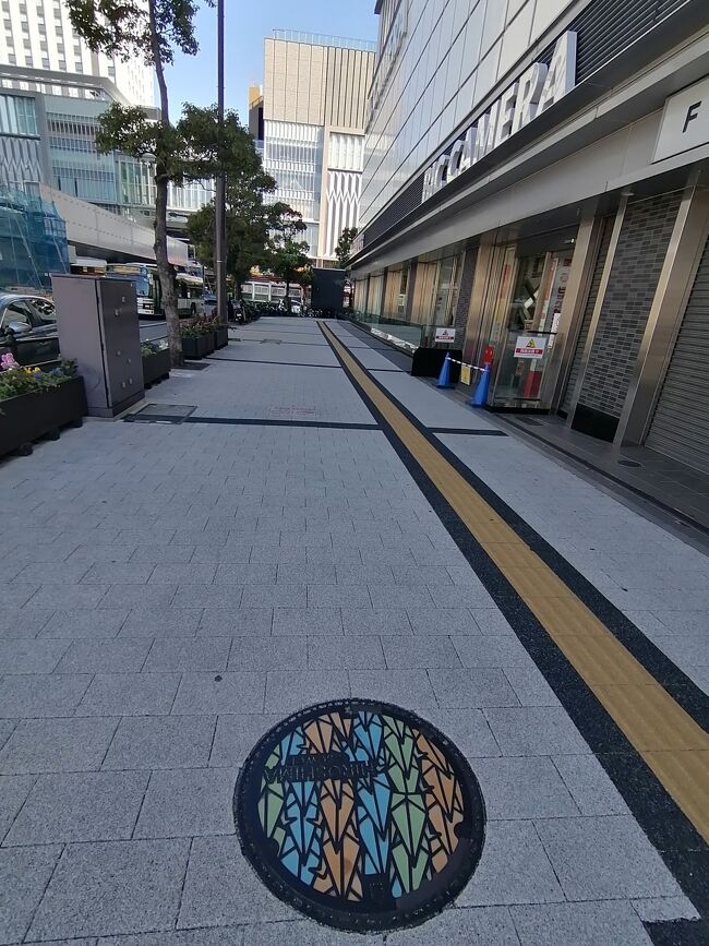 広島駅総合案内所のもらった広島市Bのマンホールカードの座標蓋を見に行きました -