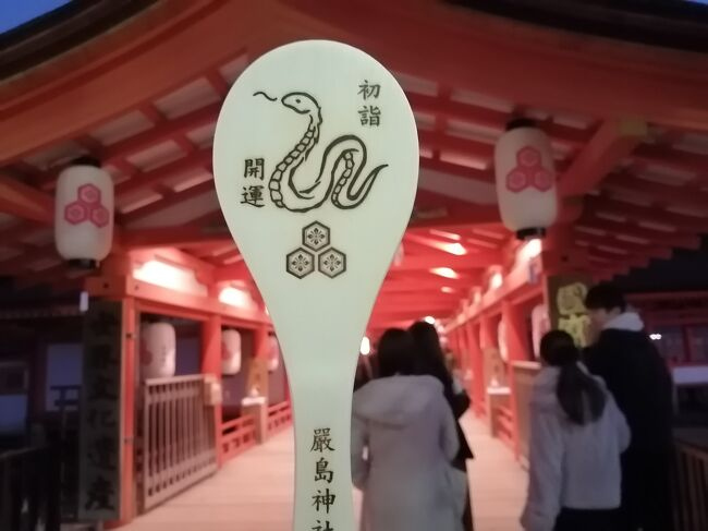 人が減ってきたので厳島神社を参拝しました。通常この時期は17:30閉門みたいですが元旦は18:30閉門のようです。 -