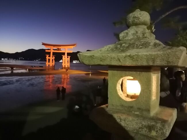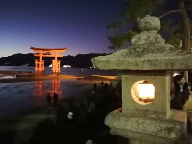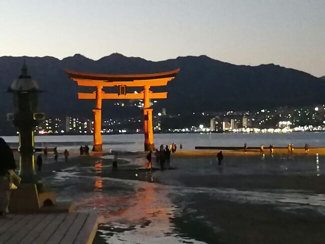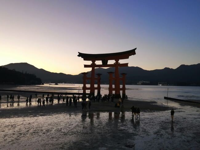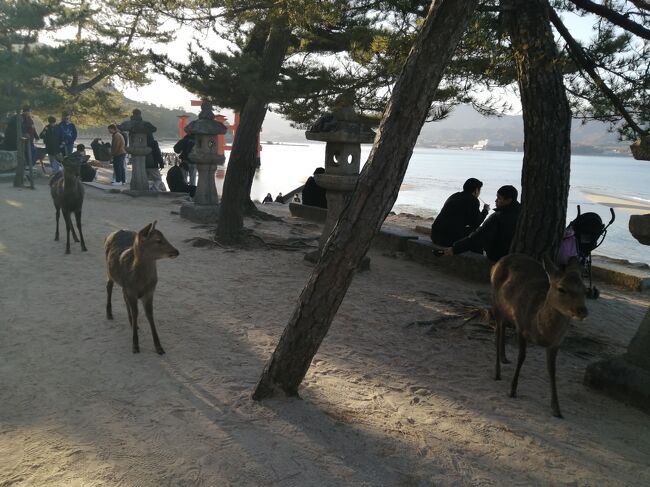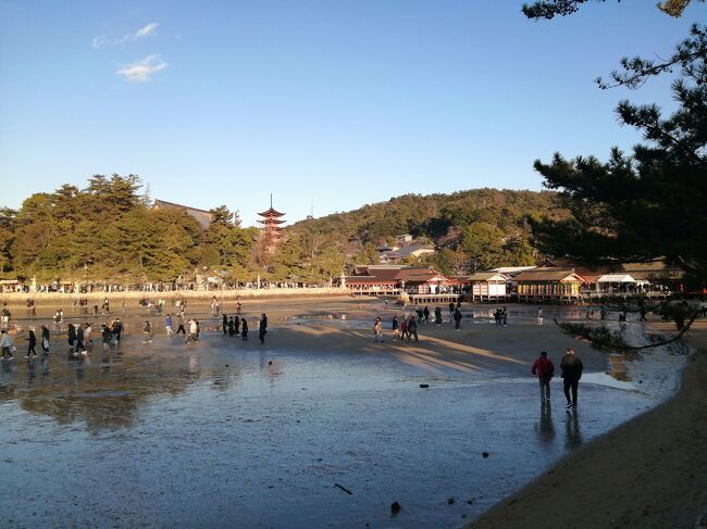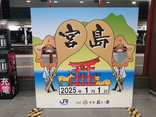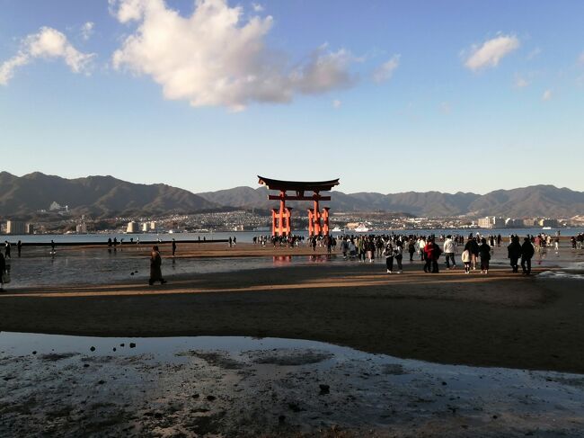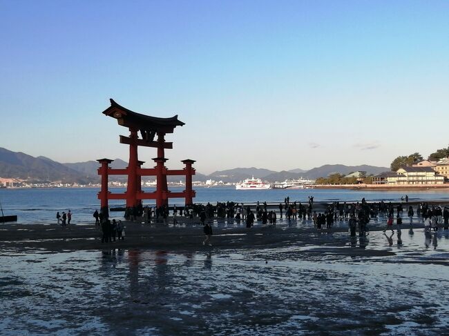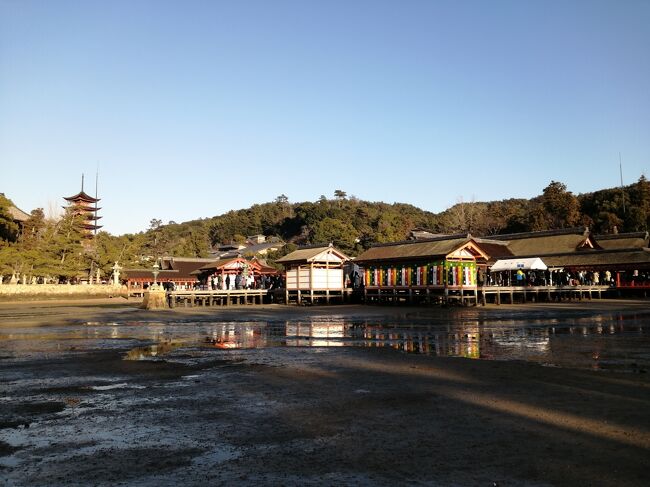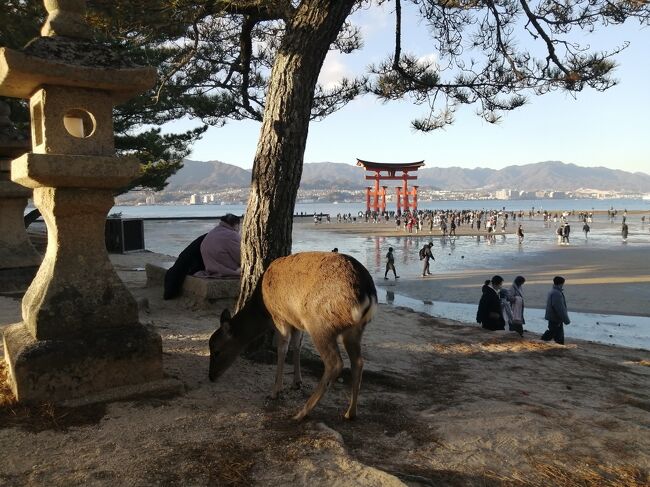 広島宮島口駅→宮島→清盛神社→牡蛎屋(ランチ)→厳島神社(初詣)→JR宮島口駅→広島駅→広島駅前ユニバーサルホテル新幹線口右