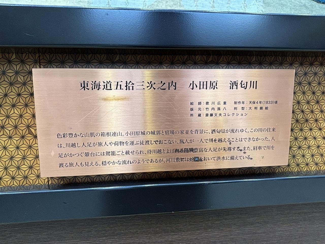 小田原駅で降りたのは初めてだったので、辺りをキョロキョロ。改札口の近くで歌川広重「東海道五拾三次之内 小田原 酒匂川」の浮世絵を見つけました。