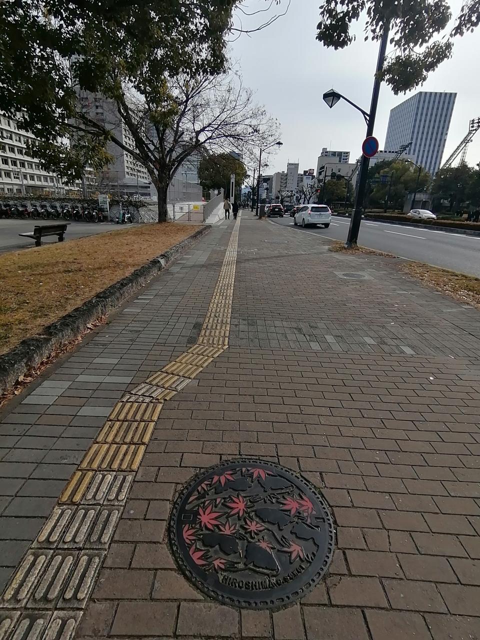 広島城の周辺にはこのデザインのマンホールは複数ありました -
