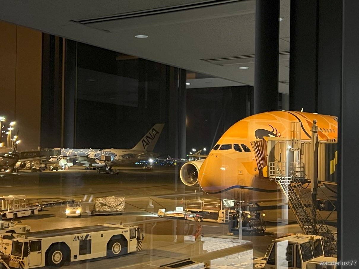 往路は3号機ラーちゃん!可愛い。成田空港の構造上、ホヌの写真をターミナルから撮れず残念。奥に1号機ラニもいる。 -