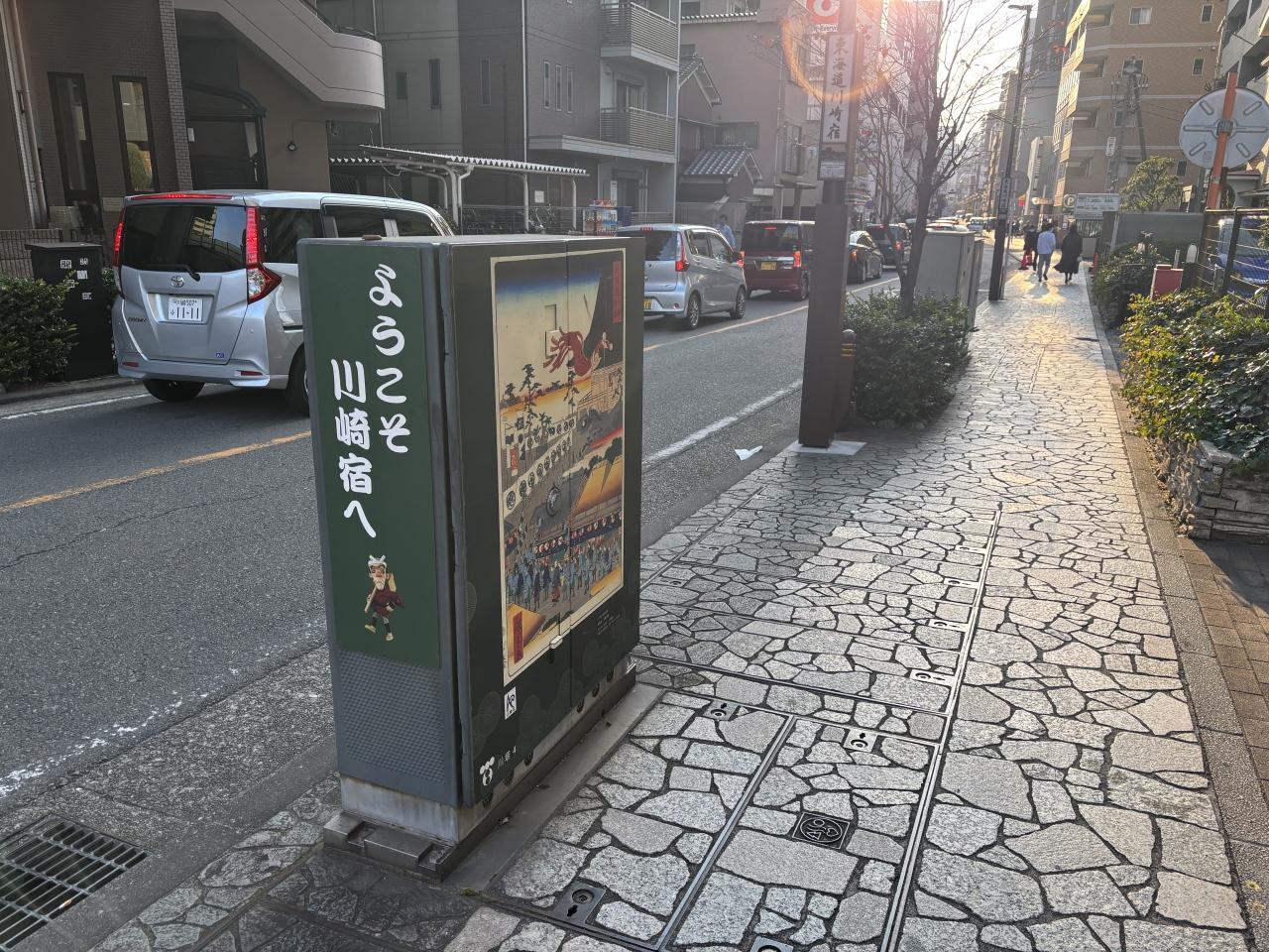 川を渡ったらすぐに川崎宿です。日本橋から2つ目の宿場町です。