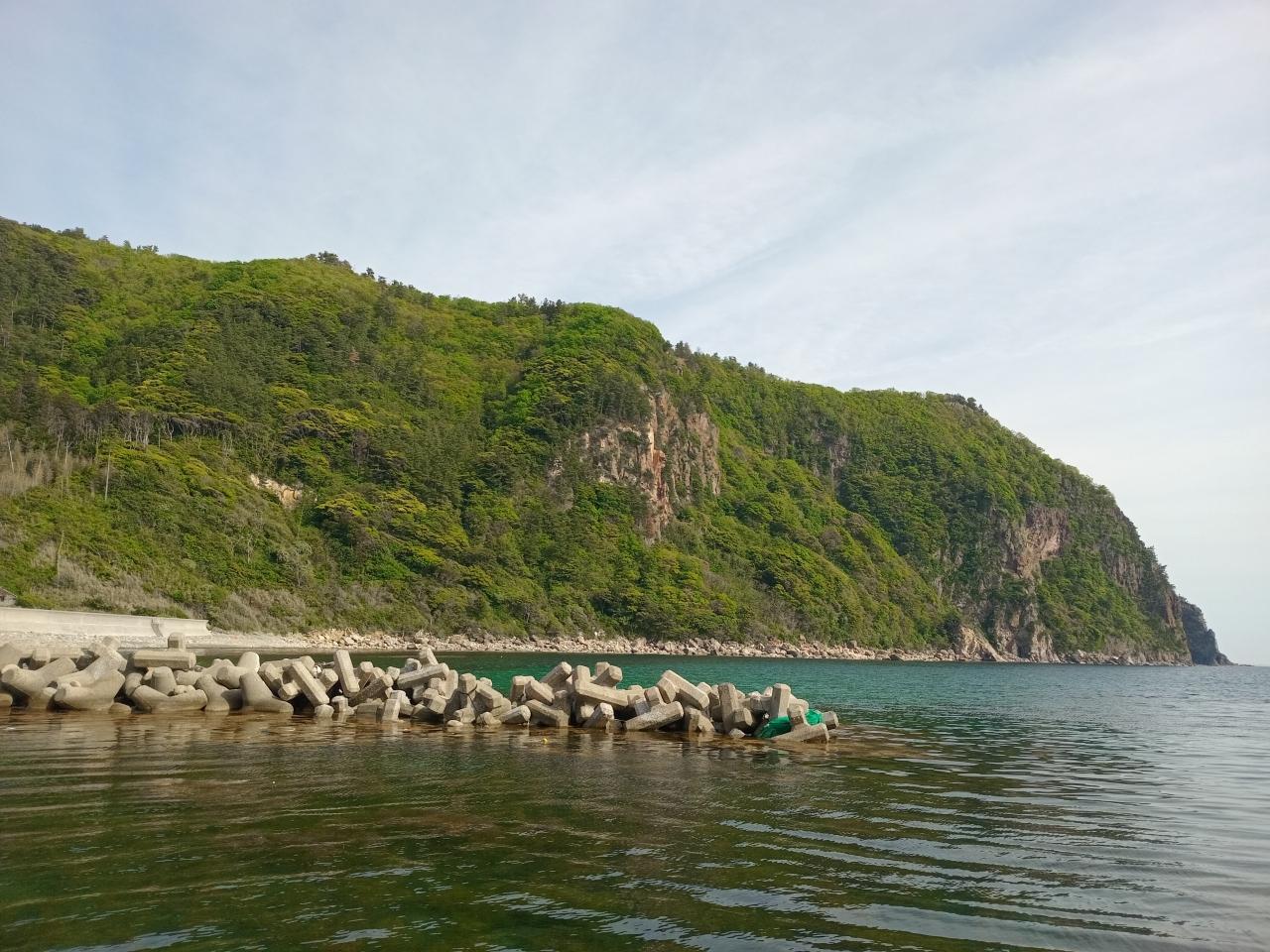 静かで美しい海と断崖の景観です。