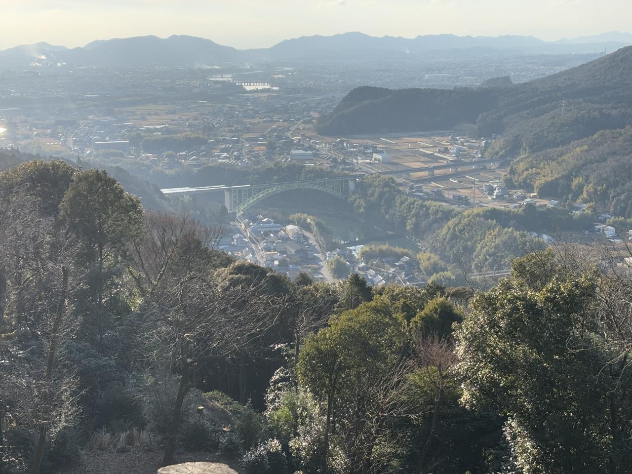 高根山の右の隙間から可児市街と木曽川が見えます。