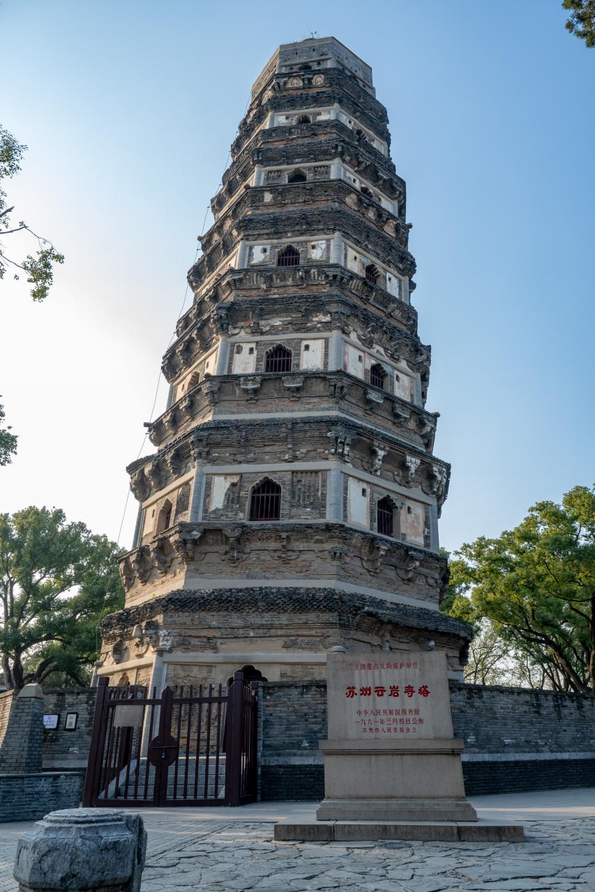 「東洋のピサの斜塔」と呼ばれる雲岩寺塔も庭園に負けないに存在感です。 -