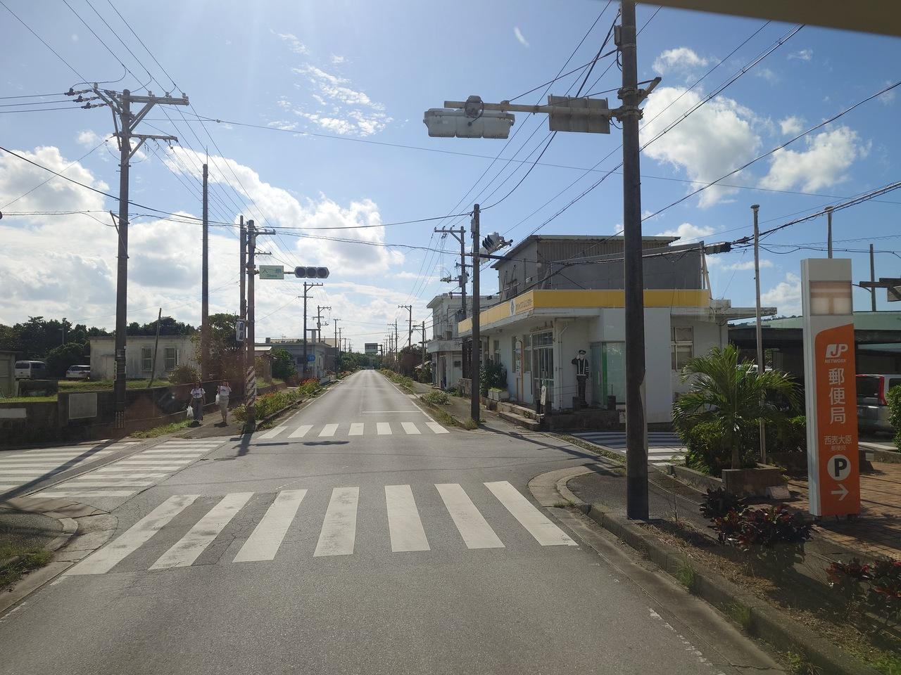 再び大原の信号機を通り、島の東部(大原側)と西部(上原・白浜側)を結ぶ唯一の主要道路である沖縄県道215号(白浜南風見線)を走っていきます。
