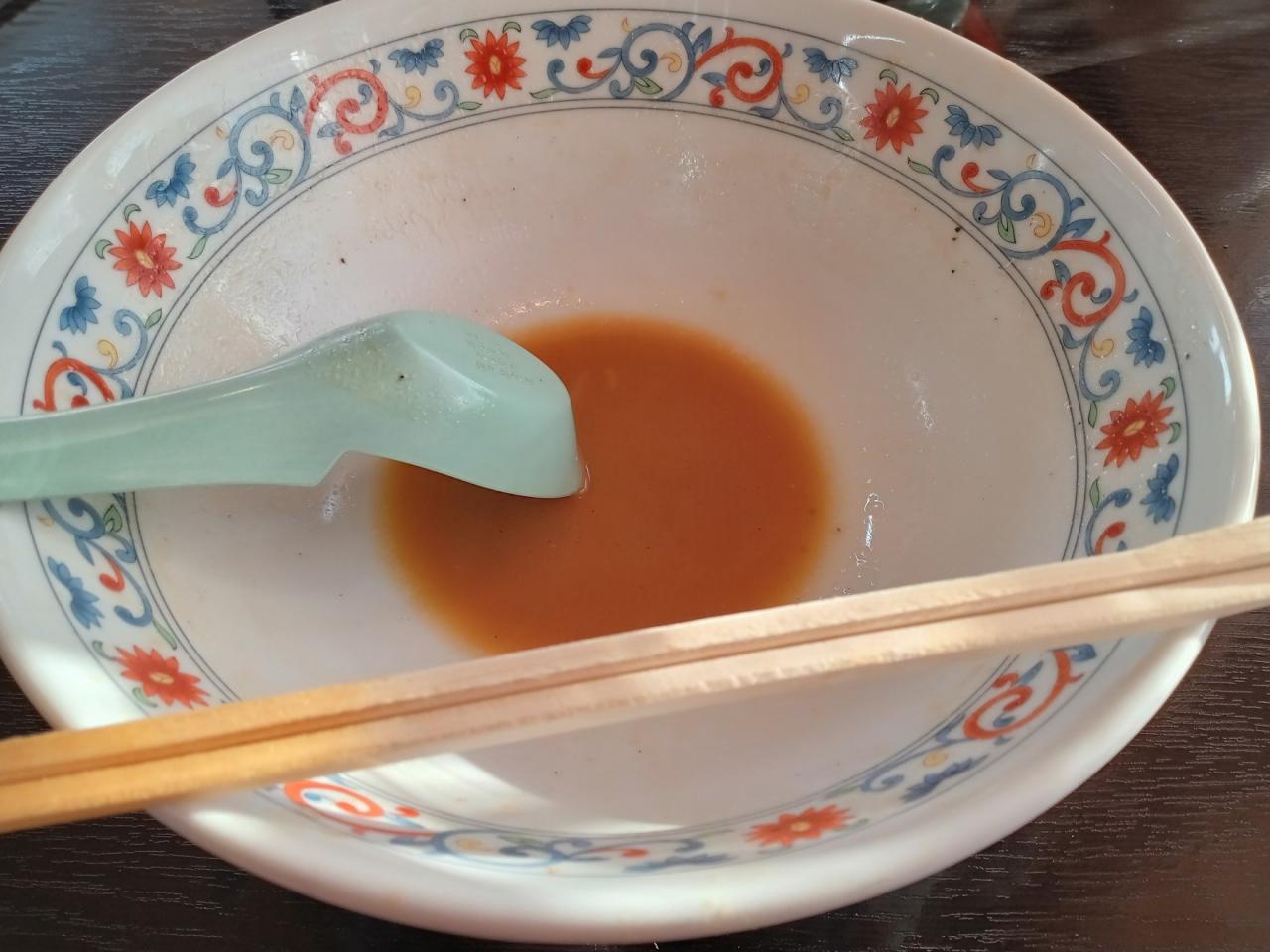 スープまで完食。旭川の「シバレ」はラーメンの味を引き立てます。