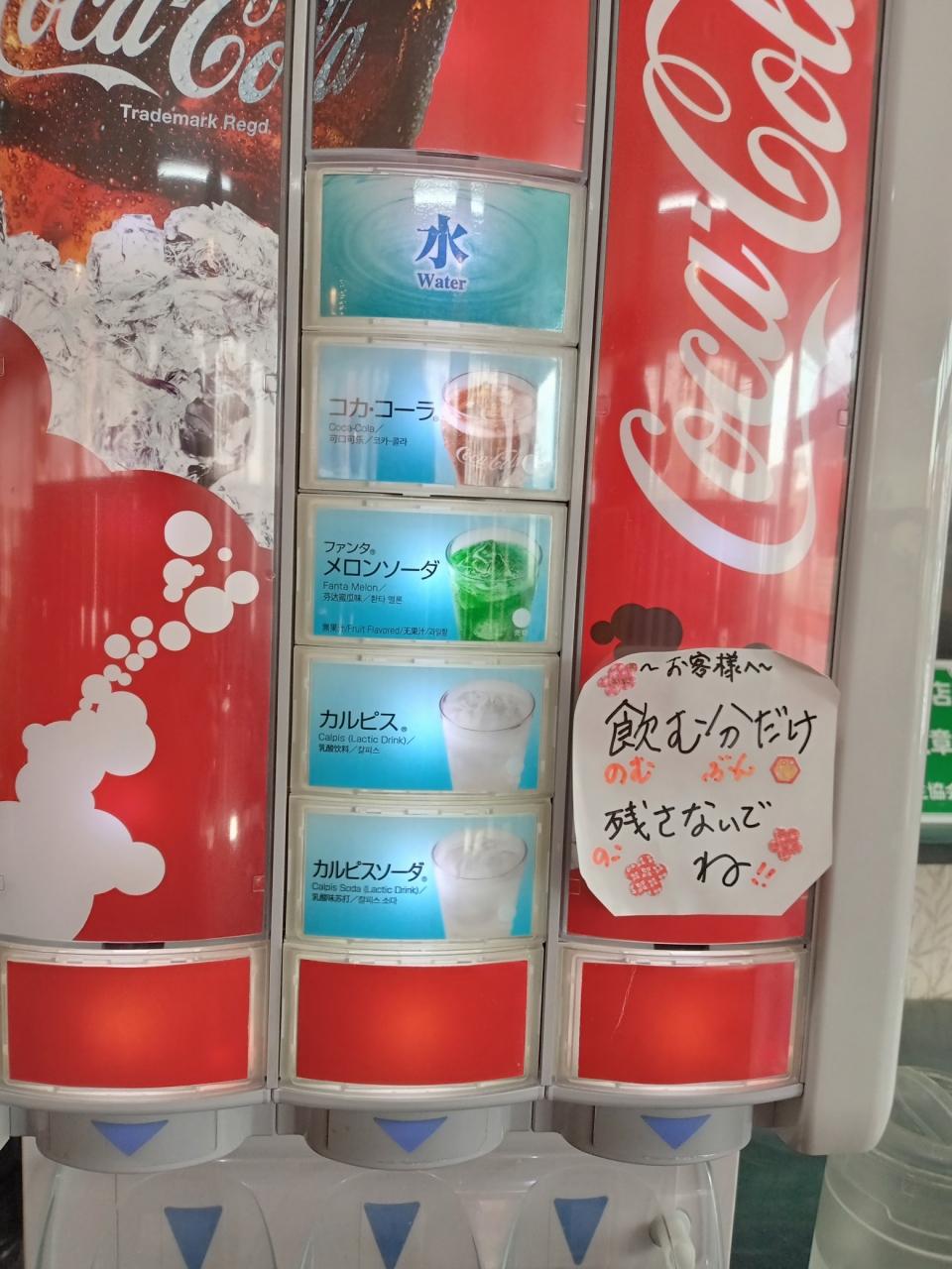 ラーメンをたのんだ人にはドリンクの無料サービスがありました。