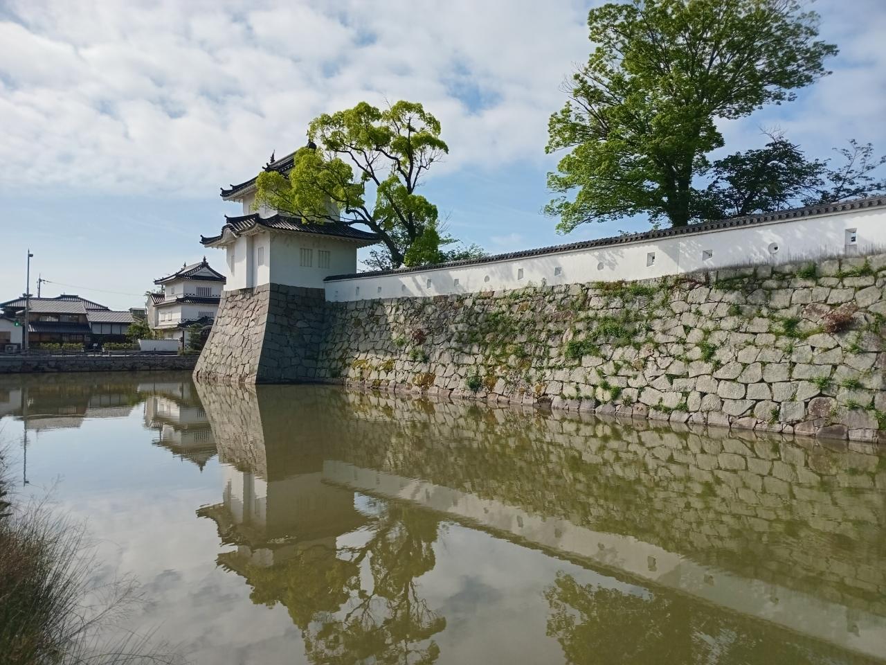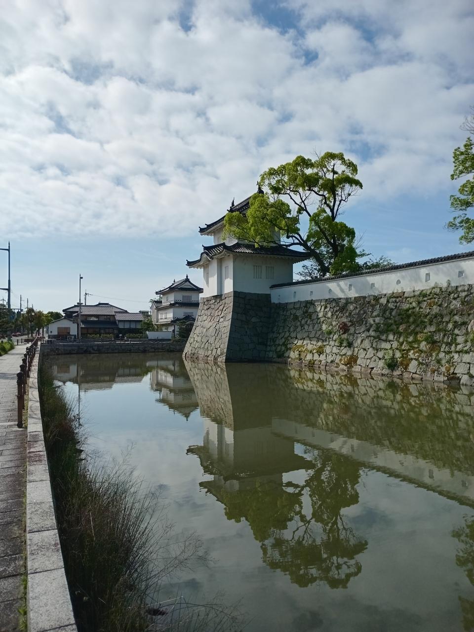 青空の下、石垣自体、そして石垣が堀の水面に映し出されているシーンも絶句するほど美しいです!
