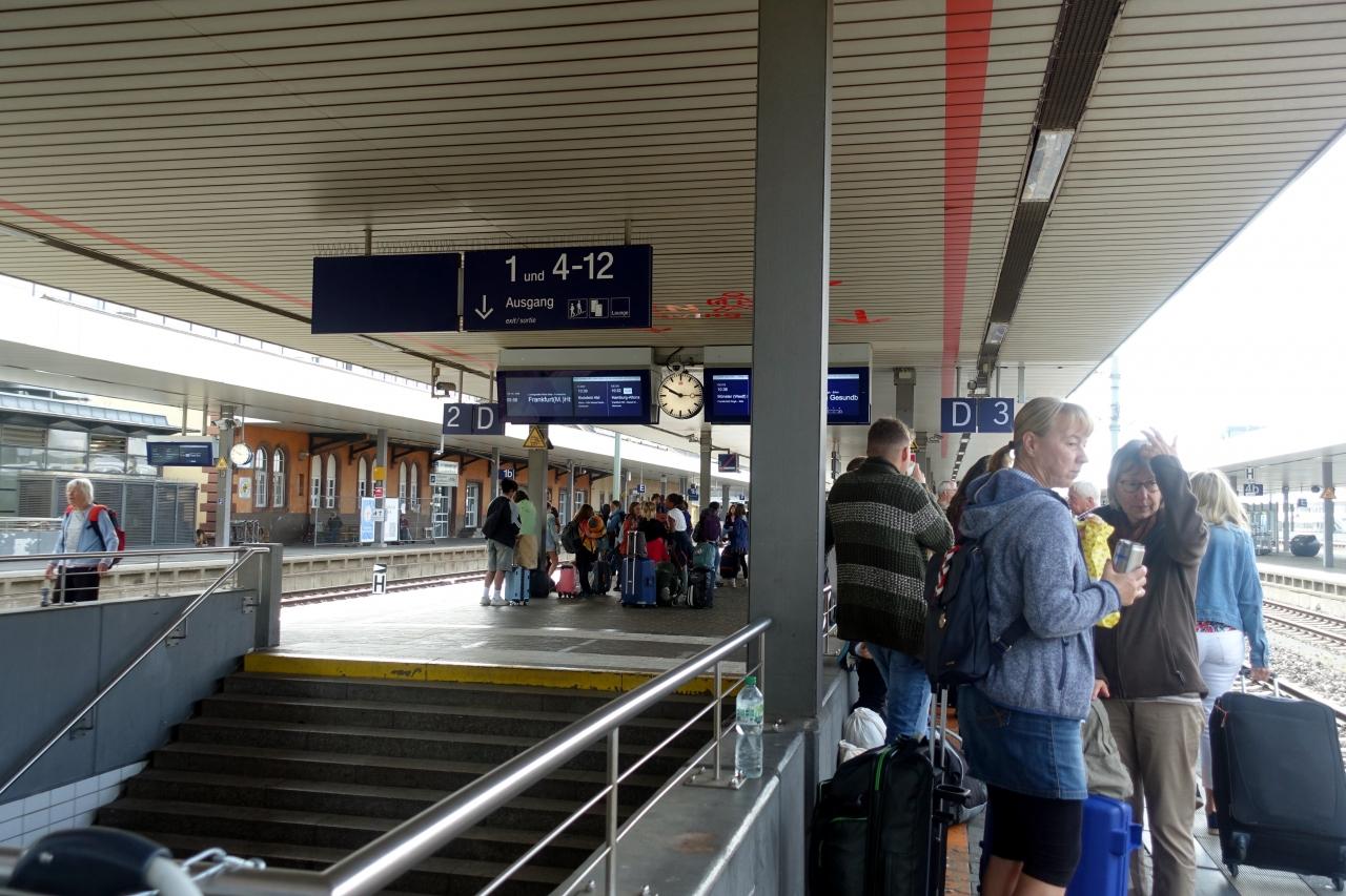 私たちが乗る7:13発のハンブルク行ICEは1番ホームから出発します。
