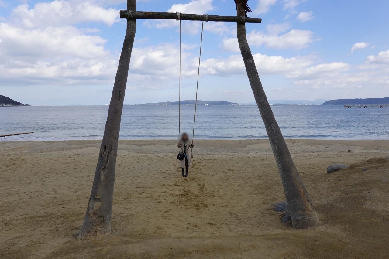 海に向かってブランコを漕いで写真を撮るべきでしたよね・・。 -