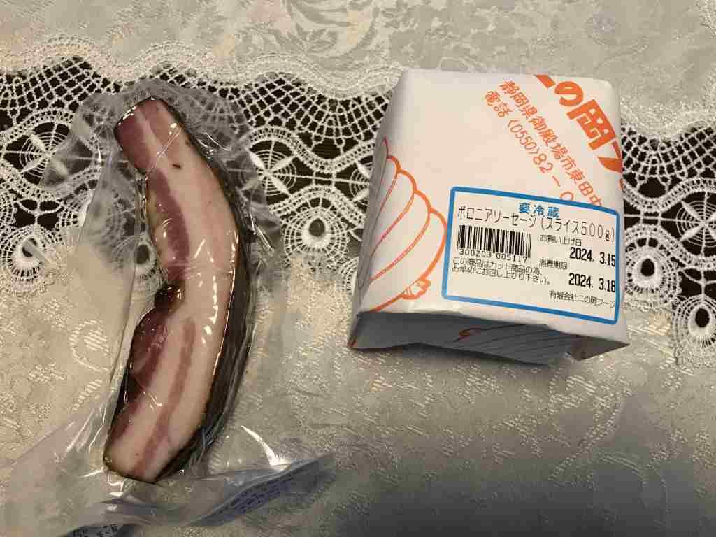 仁ノ岡フーズでいつものボロニアソーセージとベーコンを購入
