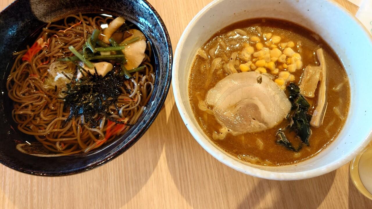 昼食は、池の平ホテルの3階にあるしらかば仲見世で味噌ラーメンと山菜そばを食べました。