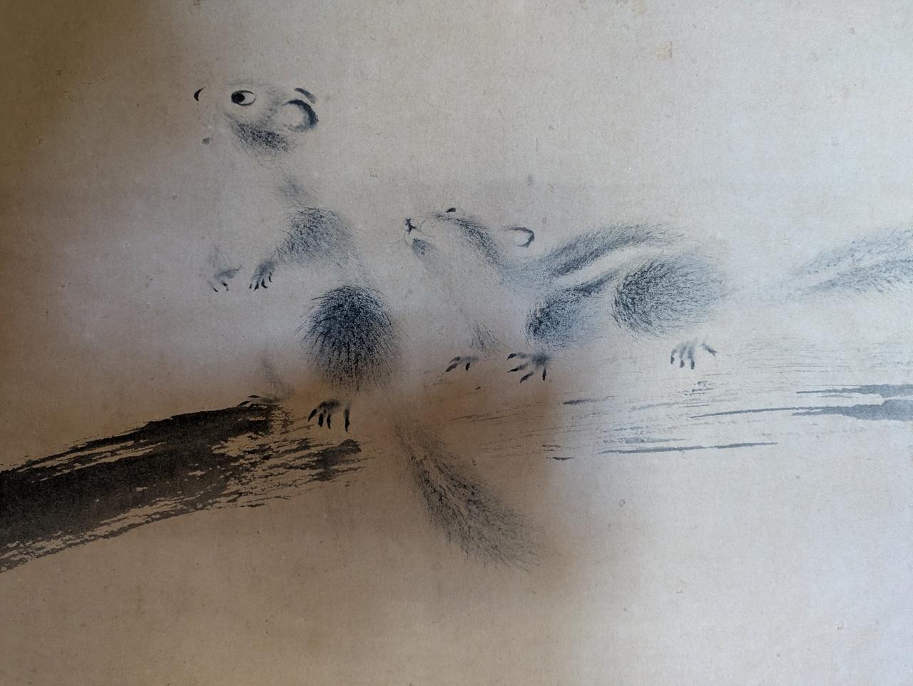 リスが見事。とても繊細に、墨の濃淡を使って描かれている。
