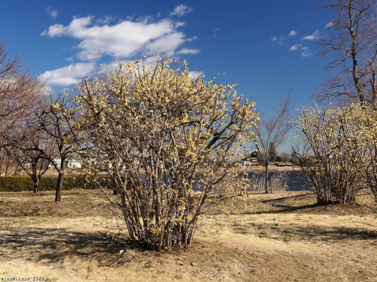 「つつじが岡公園」のロウバイ_2025_咲いてたのは少しだけ、多くはツボミ、でした(館林市)