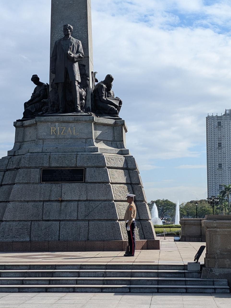ここは、スペイン統治時代の国民的英雄 ホセ・リサールさんが処刑された場所です。祈念碑が建っていて、 24時間交替で衛兵が守っています。