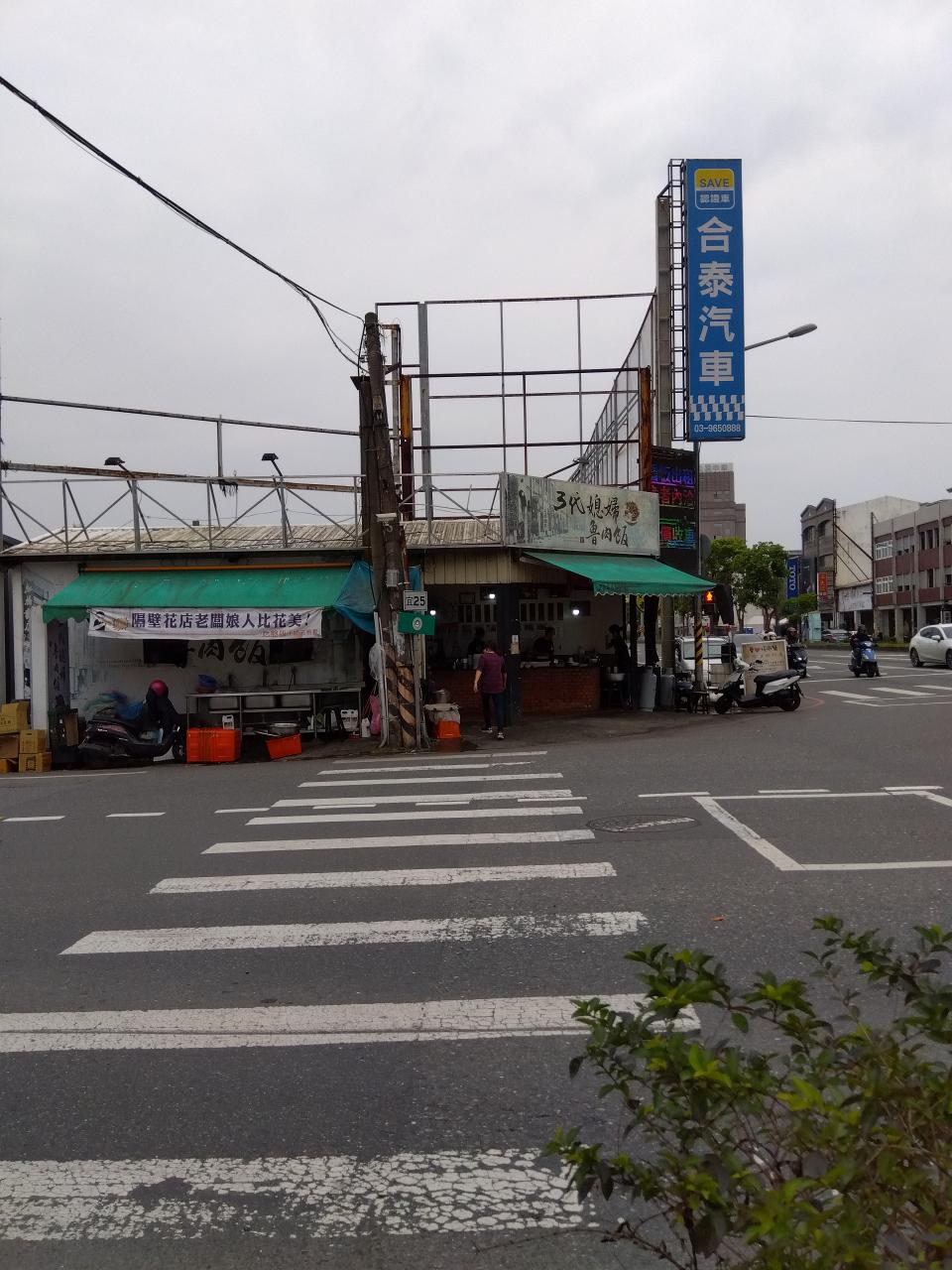 大きな交差点。信号で止まって、左を見れば、格好の位置に「三代○○・・・」の看板。魯肉飯の文字。あそこは美味しいに違いない。渡った。