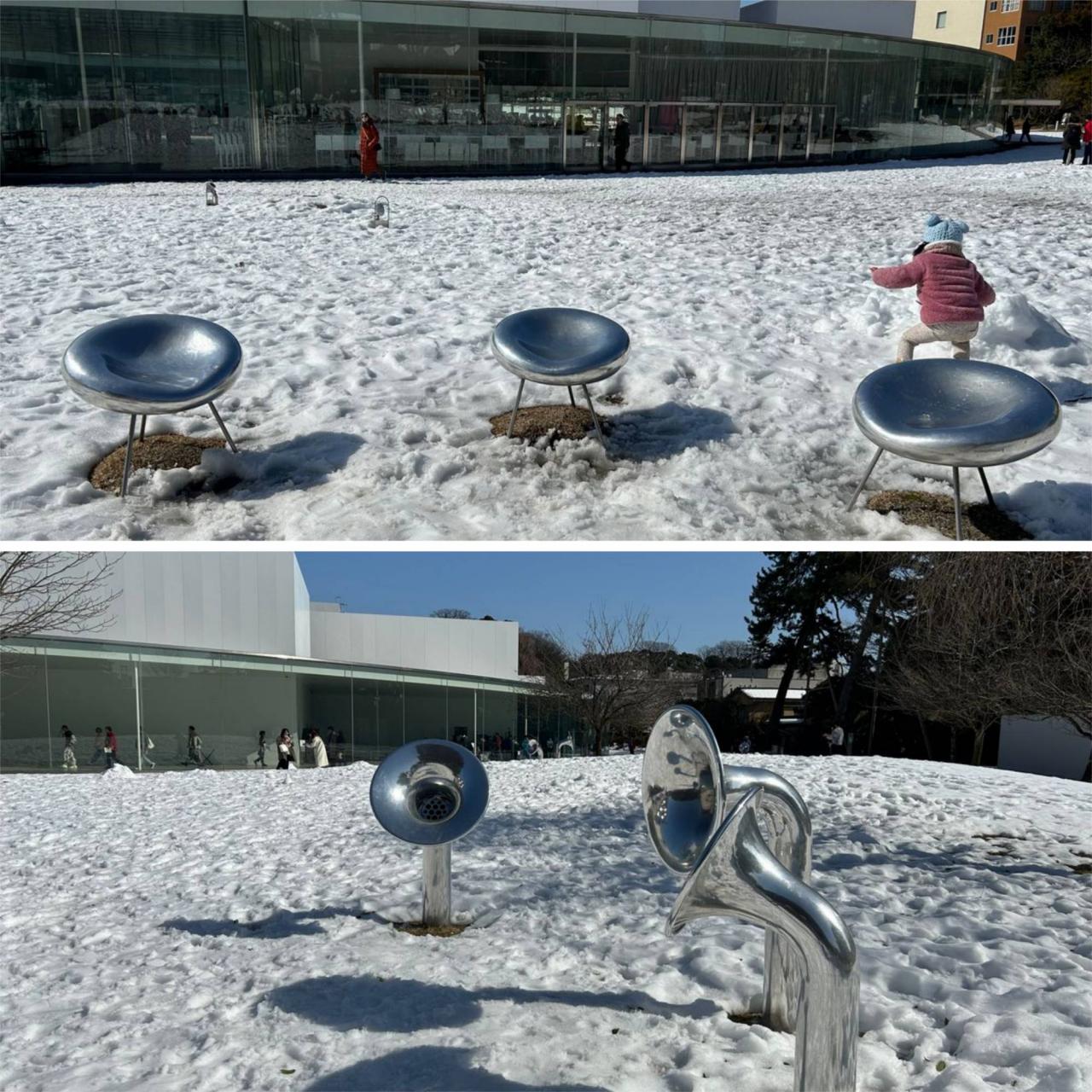 屋外展示物は雪の中です。