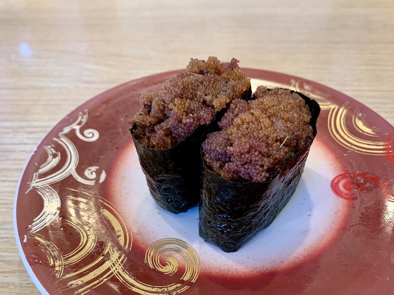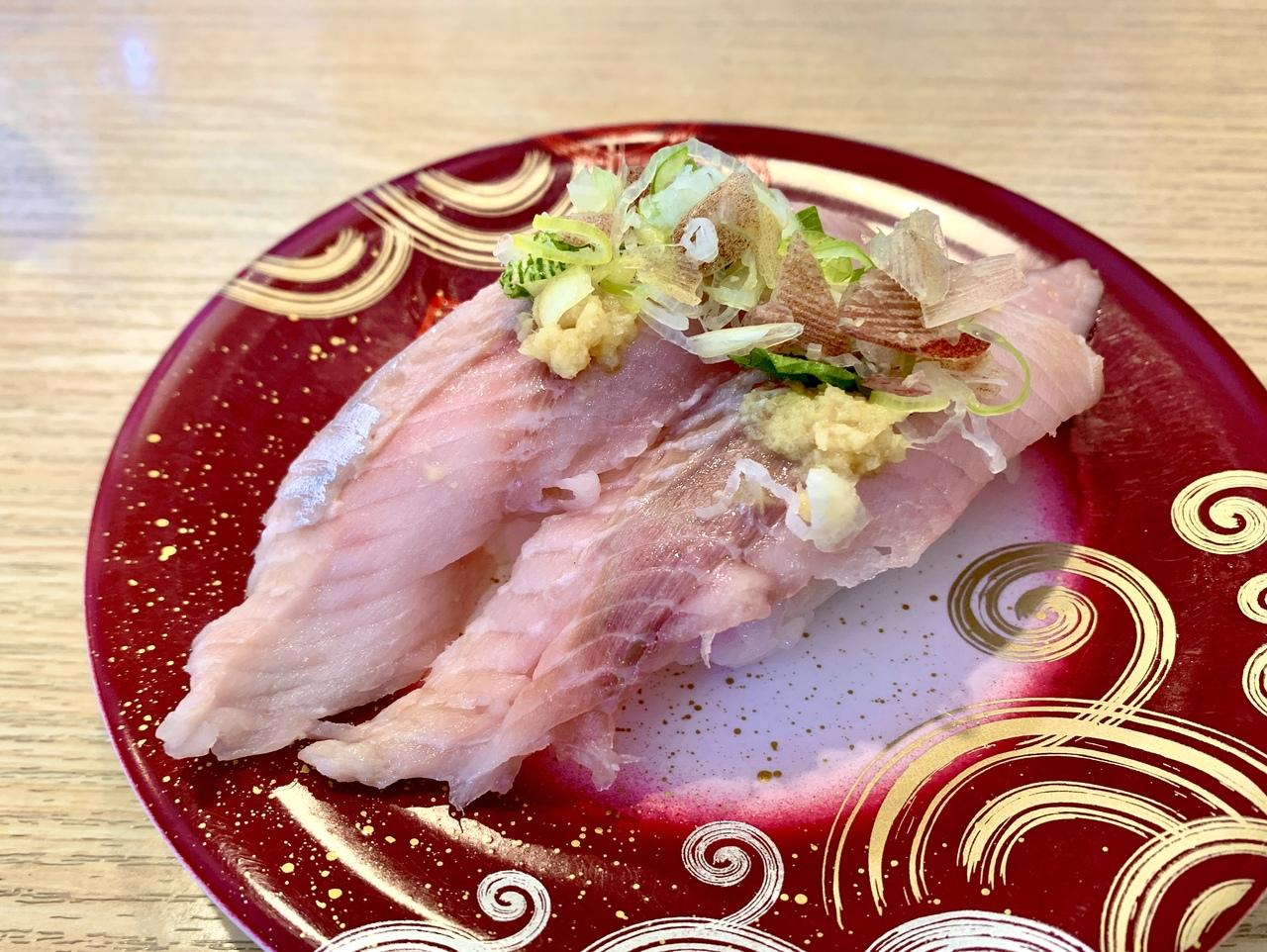 回転寿司の最初の一枚はサーモンのことが多いです。 -
