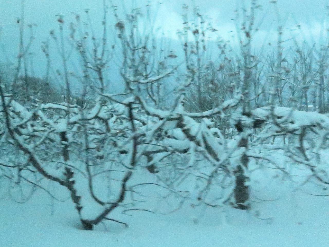 林檎が雪まみれになってますが……天然の冷蔵庫ですね。 -