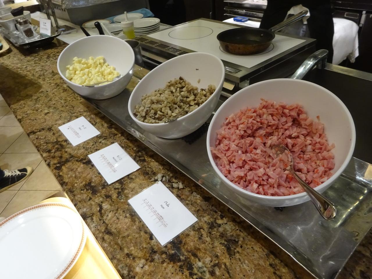 オムレツの具はハム、キノコ、チーズの中から好きな分選び放題。
