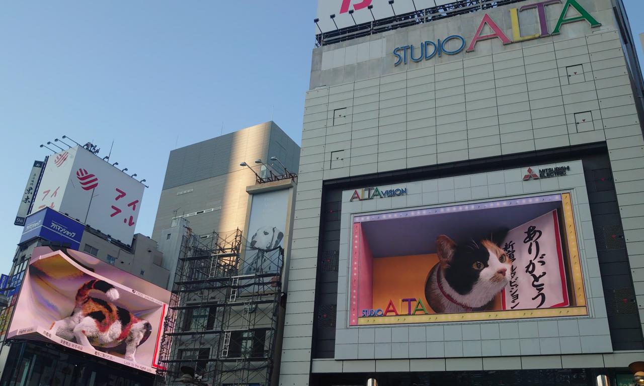 3D猫さんがアルタビジョンに顔を出し、「ありがとう アルタビジョン」